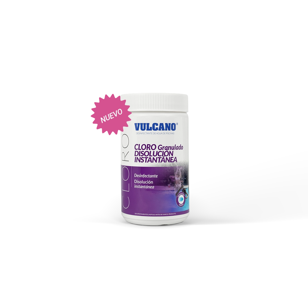 Cloro granulado Vulcano - Disolución instantánea 1 kg. Eficaz bactericida de disolución instantánea con alto poder desinfectante, apto para todo tipo de piscinas con 56% de cloro activo. No incrementa la alcalinidad del agua, se mantiene estable ante la acción del sol y es de alto poder residual.