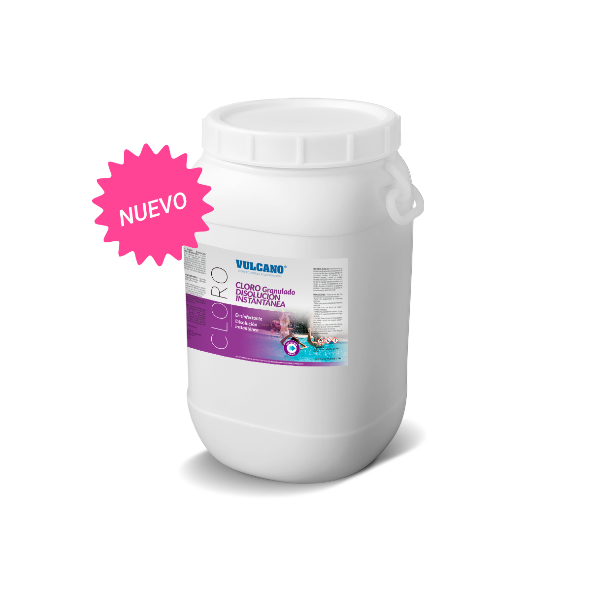 Cloro granulado Vulcano - Disolución instantánea 25 kg. Eficaz bactericida de disolución instantánea con alto poder desinfectante, apto para todo tipo de piscinas con 56% de cloro activo. No incrementa la alcalinidad del agua, se mantiene estable ante la acción del sol y es de alto poder residual.