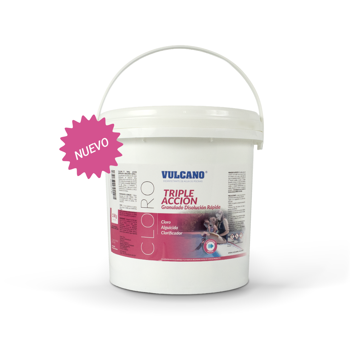 Triple Acción granulado Vulcano - Disolución rápida 10 kg. Eficaz bactericida de disolución rápida con propiedades desinfectantes, bactericidas, alguicidas, sanitizante y fungicida, apto para todo tipo de piscinas con 56% de cloro activo.